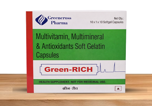 OUR PRODUCTS High-Quality Pharmaceutical Products You Can Trust Green Cross Pharma Product Range Xprs Ortho Pain Oil Call Us WhatsApp PROTIRICH Protein Powder Call Us WhatsApp K-CENT Antifungal Medicated Soap Call Us WhatsApp Droticross-MF Tablets Call Us WhatsApp LUV Diclo-MR Tablets Call Us WhatsApp NEEM,TULSI ALOEVERA Soap Call Us WhatsApp Deflacross-6 Tablets Call Us WhatsApp Rabcross-LS Tablets Call Us WhatsApp Montecross-LC Tablets Call Us WhatsApp Green-Q10 Tablets Call Us WhatsApp RabCross-DSR Tablets Call Us WhatsApp Nikhaar Super Cool Prickly Heat Powder Call Us WhatsApp MEFTACROSS-MF Medicine Call Us WhatsApp Green-RICH Tablets Call Us WhatsApp LYCORICH capsule Call Us WhatsApp Procross Biotic capsule Call Us WhatsApp OMEGA 3 capsule Call Us WhatsApp TCENT Medicated Soap Call Us WhatsApp Nikhaar Fairness Soap Call Us WhatsApp CALCIGREEN K2 7 Tablets Call Us WhatsApp Cetcross-L Syrup Call Us WhatsApp Meftacross-DS Syrup Call Us WhatsApp Aarceekof-DF Syrup Call Us WhatsApp